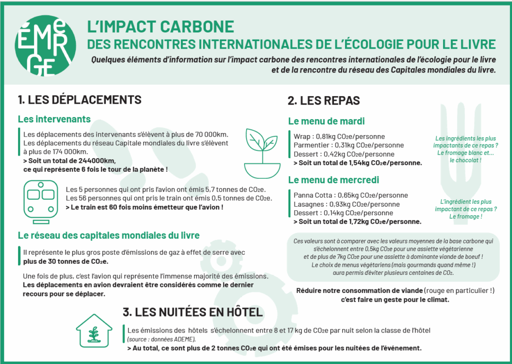 Nous avons le plaisir de partager avec vous, avec l’autorisation des deux entités, un document sur l’impact carbone de la manifestation, fournie par EMA dans le cadre de son accompagnement pour l’écolabellisation des RIEL :