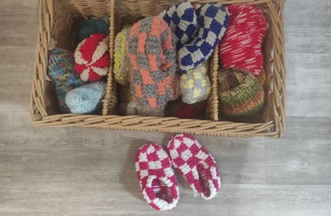 Atelier de confection de chaussons en laine à la BLB, avec le groupe « les Tricopines »